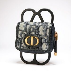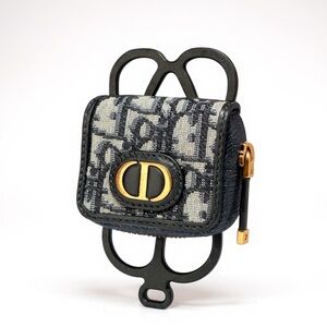 Hard to find!! Preowned Dior Black/Navy Blue Oblique Canvas and Rubber 30 Montaigne Phone Cover with Airpods Pro Case