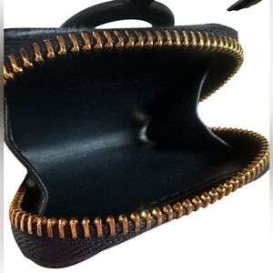 Elevate your tech accessory game with the sophisticated elegance of the Dior Black/Navy Blue Oblique Canvas and Rubber 30 Montaigne Phone Cover with Airpods Pro Case. This luxurious Christian Dior creation seamlessly blends timeless style with modern functionality. Crafted from blue Dior Oblique jacquard canvas and sleek black leather, adorned with a striking gold-tone "CD" logo, this accessory exudes glamour and sophistication. Perfect for the fashion-forward individual who appreciates both style and substance, this AirPods Pro case is not just a tech accessory but a statement piece from the renowned 30 Montaigne collection. Effortlessly combining fashion and practicality, it features a zip closure and can be easily paired with a rubber phone holder accessory,