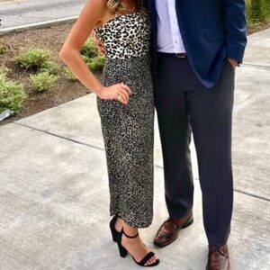 Lulus Being Bold Leopard Print Satin Midi Slip Dress Small
