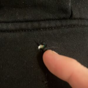 Please note; no size tag, signs of wear, a flaw/tear on the back and the tag is loose-see pics.