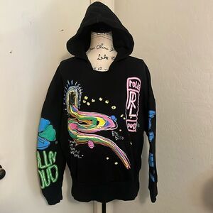 Rolling Loud UO Rainbow Road Black Graphic Pullover Hoodie Sweatshirt Casual Music. Size large; refer to approximate measurements for desired fit as there is no size tag.