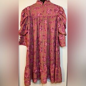 Boohoo Red and Tan Floral Dress (Size 8) Ptp 20”
