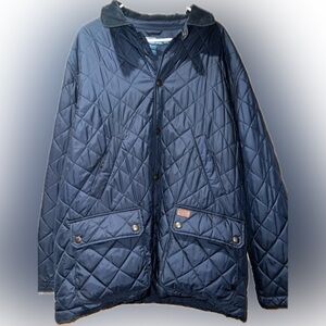 Stylish Gucci blazer with iconic pattern. Navy base with cream accents. Perfect for a sophisticated look.