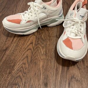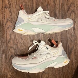 Chic cream and gray sneakers with a sleek design. Perfect for everyday comfort.