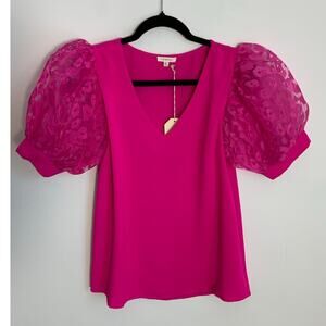 Jodifl hot pink leopard puff sleeve top