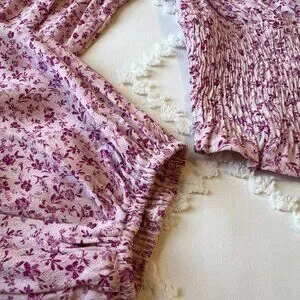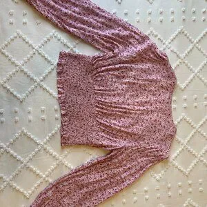 - Light pink lace detail on the front top of the sleeves