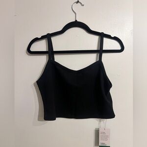 Chic black waffle-knit cropped tank. Perfect for layering or wearing alone. Soft and comfortable fabric.