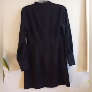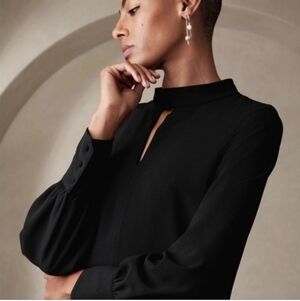 NWT Banana Republic Classic Black Dress with Keyhole Mock Turtleneck Neckline, Button Cuffed Sleeves, waist seaming detail, back zip, Valentine's Datenight