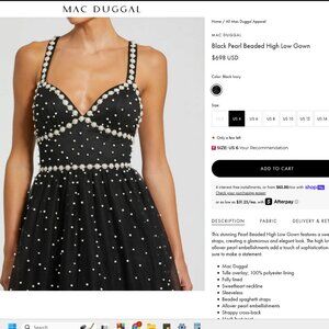 $698 Mac Duggal 20747 Size 4 Black Pearl Beaded High Low Long Maxi Dress Gown
