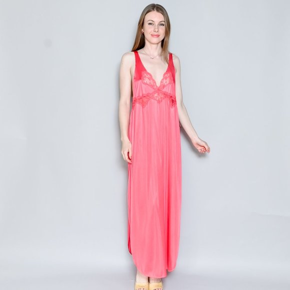 698. VINTAGE Maidenform Pink Lace Trim Maxi Gown NWT M