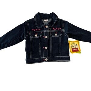 (NWT) Wrangler Kids Denim Jacket Dark Blue w/ Pink Details | Baby Girl 12 Months