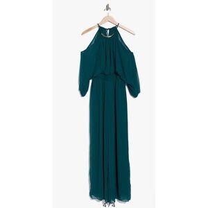 Halogen Teal Chiffon Halter Jumpsuit Cold Shoulder NWT Size Small fits 6-8