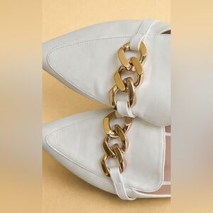 ❤️Easy Smile- White Mules with Gold Chain Size 7