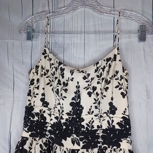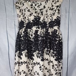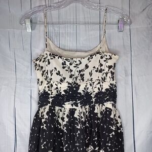 Ann Taylor 100% Silk Sleeveless Black and Cream Floral Dress Size 2