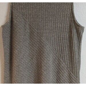 The Women's Sunday In Brooklyn Sleeveless Mock Neck Hi-Low Hem Ribbed Top in Medium is a versatile and stylish piece perfect for various occasions. Made from a poly/spandex blend with a tight-knit fabric, this top features a mock neck and a sleeveless design for a classic look. The beige color and solid pattern make it easy to pair with different outfits, while the hi-low hem adds a unique touch to the garment. With its lightweight and breathable features, this sweater is suitable for all seasons and can be machine washed for easy care. Perfect for travel, parties, casual outings, workwear, or business settings, this top from the brand Sunday in Brooklyn is a must-have addition to any woman's wardrobe.