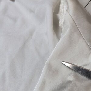 Good return condition: a few small flaws/marks shown in photos that should come out with treatment or dry clean. no tears, holes, pilling. May have been washed or returned but appears crisp.