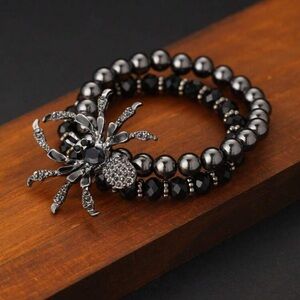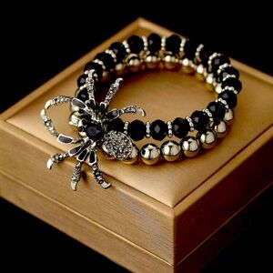 🕷️😬🕷️ SCARY❗️ BLACK AND SILVER SPIDER STRETCH BRACELET❗️ STUNNING❗️ 2 BRACELETS IN 1❗️ 🕷️😬🕷️