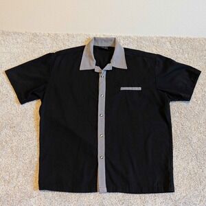Daddy Os Mens Black Short Sleeve Button Up Shirt Dice Buttons Size L Made in USA