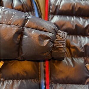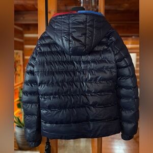 Stylish Marco Nils puffer jacket in a sleek navy blue with bold contrast zippers (red & blue). Lightweight but warm design with hood, perfect for fall, winter, and transitional weather. Sporty, modern look that works for everyday wear, travel, and outdoor activities.