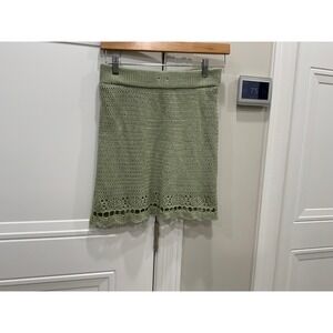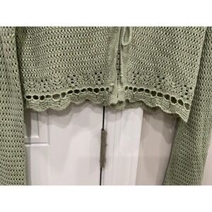 Crochet Knit Cropped Cardigan Skirt Set Sage Green Size M