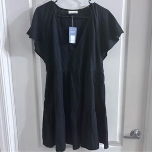 Chic black mini dress with short sleeves. Flattering fit and versatile style.