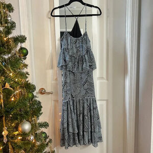1110 Cinq a Sept Tiered Midi Dress Size 10 Color Black Blue