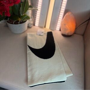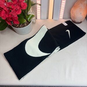 NIKE SWOOSH NWT, Elegant knit scarf by NIKE. Features a sleek design in black and cream. Ideal for adding a touch of sophistication.