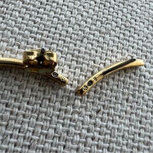 These stunning earrings feature a sleek gold design adorned with shimmering crystals. Bold and contemporary in their sculptural style, these ear climbers prong set with cubic zirconia feature sweeping lines and a polished finish. Perfect for adding a touch of elegance to any outfit.