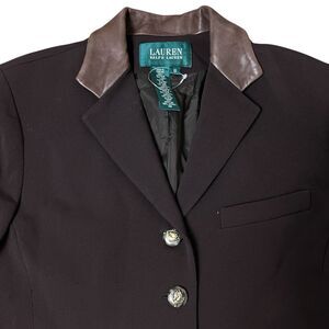 Lauren Ralph Lauren Brown Wool Leather Collar Horse Buttons Equestrian Blazer