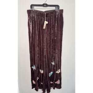 Johnny Was Luciana Coffee Bean Velvet Embroidered Wide Leg Pants NWT XL Boho Y2K