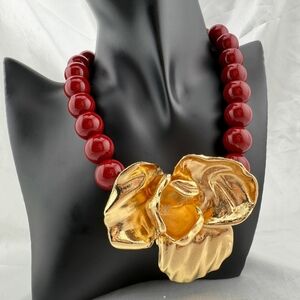 Zara Elegant Gold and Red Beaded Necklace
