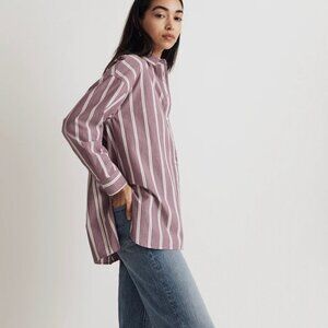 MADEWELL STRIPED POPLIN OVERSIZED SHIRT in IRIS BLOOM