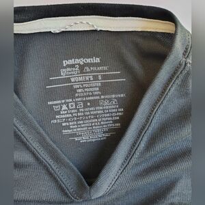 Patagonia Capilene 2 Women's Lightweight V-Neck Long-Sleeve Top in Black, Size S, Stretch, 100% Polyester, Sporty, Breathable, Garment Washed in Excellent Condition.