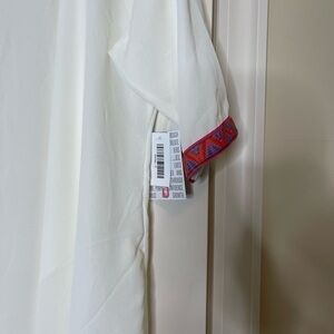 Lularoe Shirley kimono sheer white with pink orange sleeve detail. smoke free. NWT SIZE SMall. bought and never wore