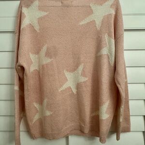 Altar'd State Pink and Cream Star V-Neck Sweater