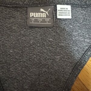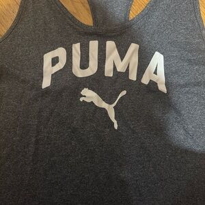 Charcoal gray tank by PUMA with white lettering. Perfect to pair with leggings for an easy workout fit or errand fit.