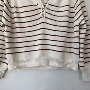 Sezane Leontine Jumper Sweater in Ecru Camel Stripe Size XS