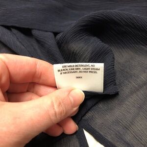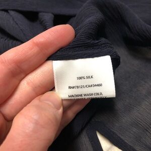 NWOT Eileen Fisher sheer silk jacket/duster in a deep navy blue! Absolutely beautiful, flowy, and lightweight. Has a very small mark on one sleeve as pictured, which will more than likely come right off with a wash. Comes from a smoke free home.