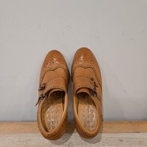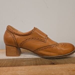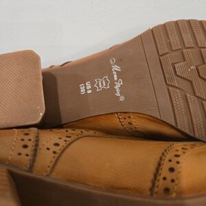 The Mona Flying Leather Oxford Leather Wingtip Chestnut Brown Handmade Woman Size 8 is a stylish and elegant pair of flat shoes designed for women. With a solid brown color and wingtip accents, these handcrafted leather shoes feature a round toe and buckle closure, making them perfect for casual or travel occasions. The leather lining, upper material, and outsole all contribute to the comfort and durability of these versatile shoes, ideal for the summer, fall, and spring seasons.