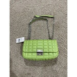 NWT Michael Kors Tribeca Large Quilted Leather Shoulder/Crossbody Bag In Green
