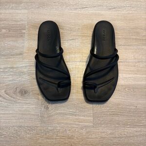 Women’s Black Crocs Miami Toe Loop Sandal Comfort Minimal Resort Size 8