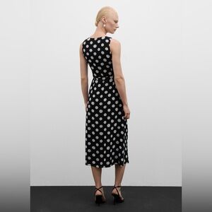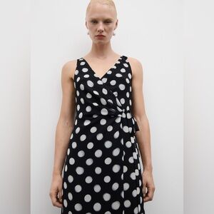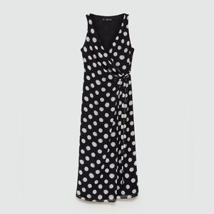 Fluid fabric. Long design. Straight design. Wrap design. Polka dot print.