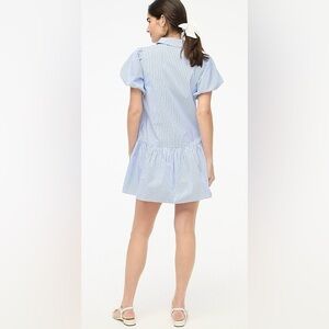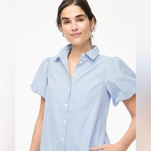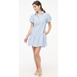 J. Crew Striped Bubble-Sleeve Button-Front Shirt Dress