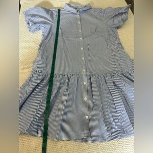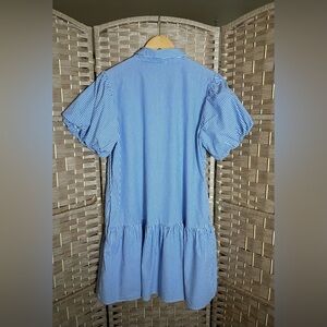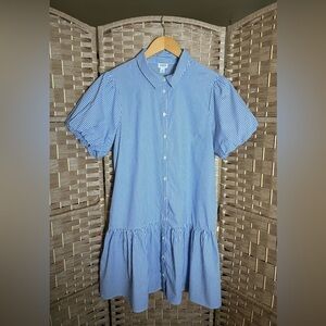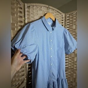 J. Crew Striped Bubble-Sleeve Button-Front Shirt Dress - Size 14