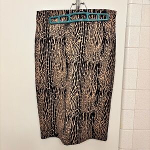 Vintage Carmen Marc Valvo Black Tan Animal Print Pencil Skirt Pull On Washable