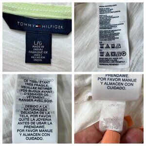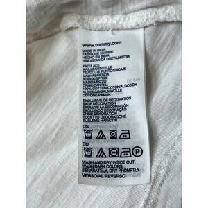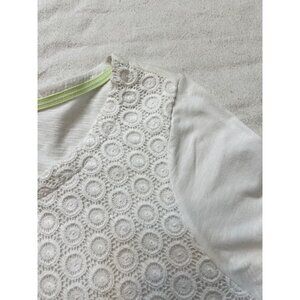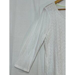 Tommy Hilfiger White Lace Front 3/4 Sleeve Top Women's Size L Cotton Blend, pull-over, Minimalist,