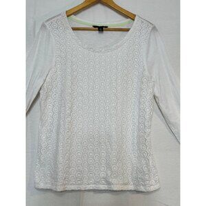 Tommy Hilfiger White Lace Front 3/4 Sleeve Top Womens Size L Pull-over
