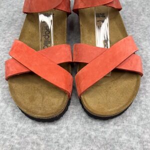 Birkenstock Papillio Orange Lola Nubuck Leather Ankle Strap Wedge Sandal Size 39