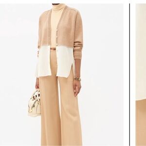 Chloe Brown and Off-White Georgette V-Neck Cardigan