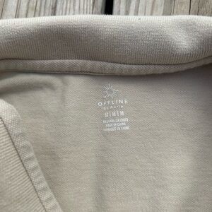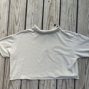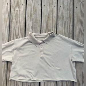 Offline by Aerie Beige Short Sleeve Cropped Polo Blouse Womens M Preppy